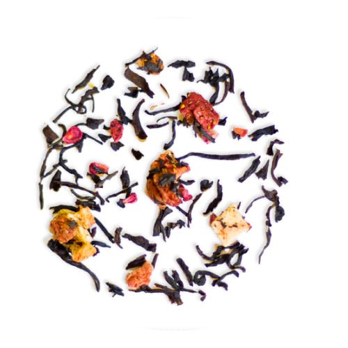 A blend where strawberries and raspberries contribute a sweet berry flavor and coconut makes the tea round and creamy. The tea is beautifully decorated with both strawberry pieces and coconut flakes and tastes like summer in a cup. It is equally suitable to drink hot or cold.