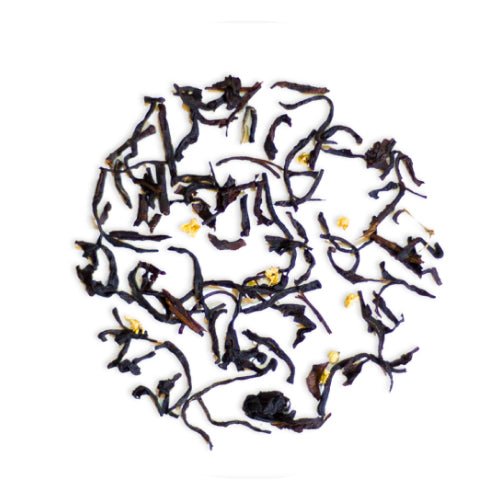 Black tea flavored with natural elderberries, and garnished with elderflowers.