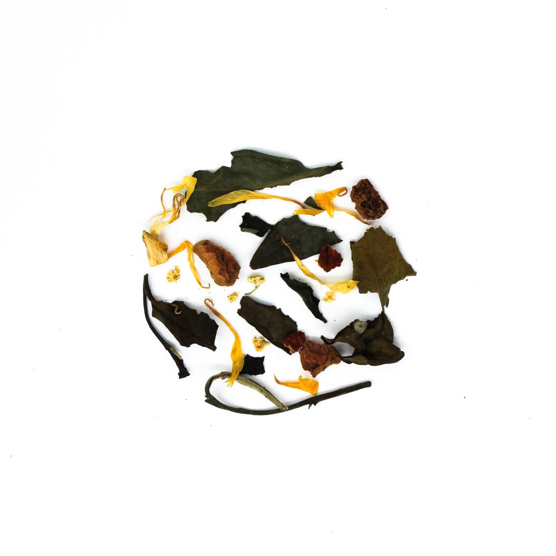 A high-quality Chinese white tea, Bai Mu Dan, which has been flavored with elderflower, peach, apple and marigold.